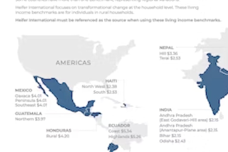Heifer International calculates living income benchmarks in the 19 countries in which it works.
