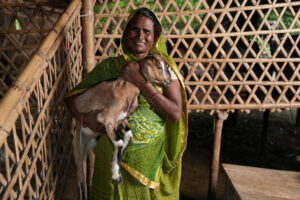Goliya received support to start her goat farm through the project and, on a plot of land about 1/5 an acre, Ajay, Goliya and the rest of their family started raising goats. They began with 20, eventually growing their herd to 35. To feed their animals, they cultivated janera, a type of goat fodder. The income from these goats allowed them to rent farmland where they could grow grains for their household consumption instead of relying on sharecropping, which required a portion of yields as payment for using the land.