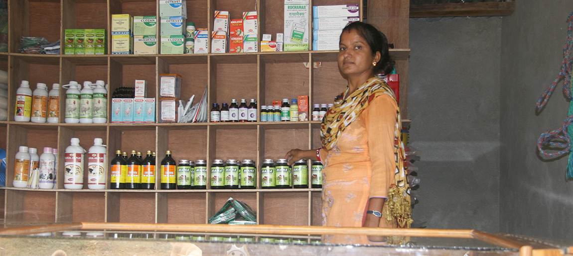 It only took a few months of working as a CAVE to recognize the great earning potential. So, Radha convinced her husband to return home to help her run the shop. In December 2012, Indra quit his job in Saudi Arabia and headed home. The couple has opened a new agro-vet shop in Dang, which Indra runs with help from his wife. He will receive his CAVE training in the coming days.