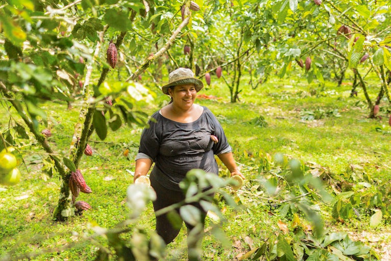 Her prize-winning fertilizer isn’t the only trick up Robles’ sleeve. She increased the volume of her harvest with another organic alternative. It is necessary to spray an herbicide around the bottoms of the trees to prevent other plants from choking the cacao plants, but when she used a traditional chemical herbicide, the pods at the bottom of the plant would die, too. Now that she uses her own organic formula, she is able to harvest an additional pound of cacao per tree. Multiplied by the hundreds of trees in her orchard, that’s a significant uptick in production and income.