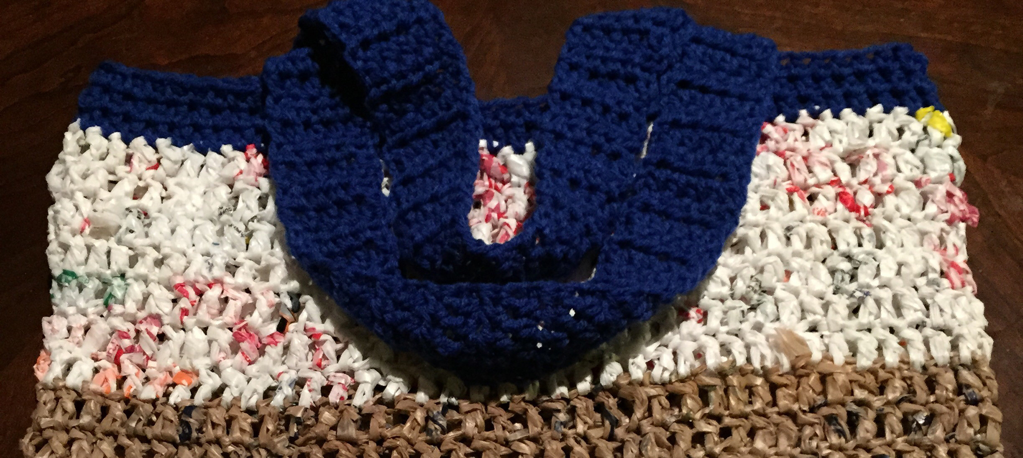 Plarn is a big deal these days. Have you heard of it? Slicing plastic bags into strips, knotting those strips into “plarn” (plastic yarn) and knitting or crocheting them into new bags (or mats, baskets, hats, etc.) is actually a thing. Check out Pinterest if you don’t believe me. Lots of libraries and community centers offer how-to classes, and some homeless shelters keep their volunteers busy crocheting portable sleeping mats. My friend Darby drags her teenaged son to classes where they work together to make these mats. If a sullen 15-year-old can do this, you can, too! Don’t know how to knit or crochet? That’s alright, it’s easy enough to learn. You need a new hobby anyway.
