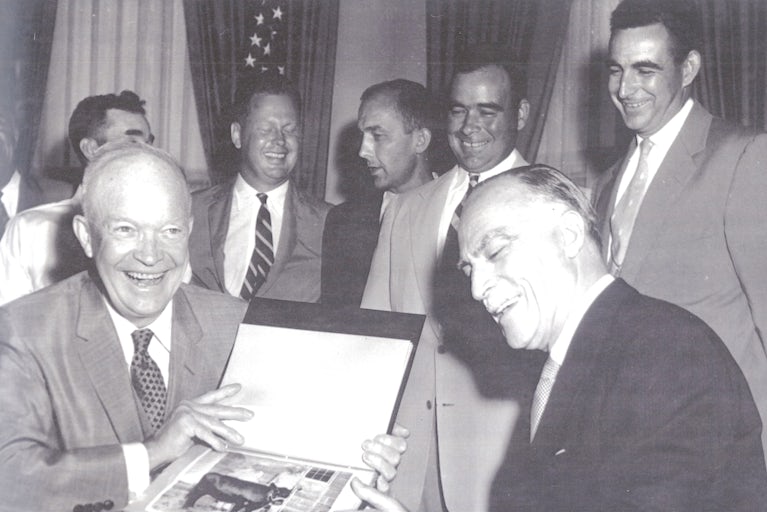President Eisenhower donated several of his own prize Angus bulls to a Heifer project in Greece. He also donated a bull to Heifer’s relief project in Korea in 1972, the same year that First Lady Mamie Eisenhower joined Heifer Project International’s Advisory Council. At the time, Heifer’s International Advisory Council functioned as a liaison between the organization and prominent world citizens who endorsed Heifer’s work and wanted to lend their support. “It sounds like a fine project and I am pleased to lend my support,” said First Lady Eisenhower when she distinguished the Advisory Council with her membership.