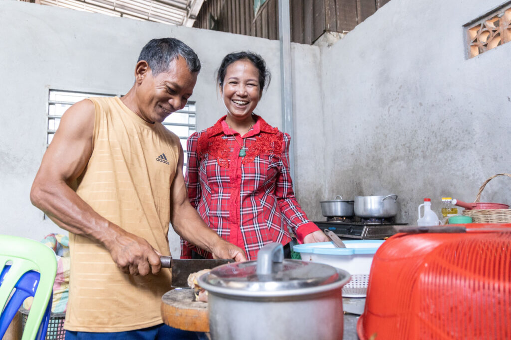 In Trapeang Krapeu village, Kampong Chhnang province, Cambodia, Sun Sythol and Rith Chantha prepare a meal together in their kitchen. After years of struggling to earn a steady income and support their family, the couple rebuilt their livelihood through Heifer’s Poultry Project of National Pride Signature Program. Today, they raise chickens for both income and family meals, sharing the rewards of their work side by side.