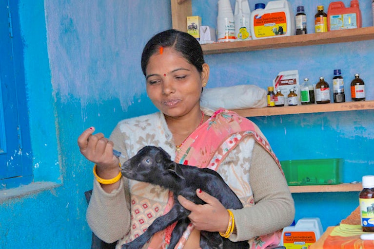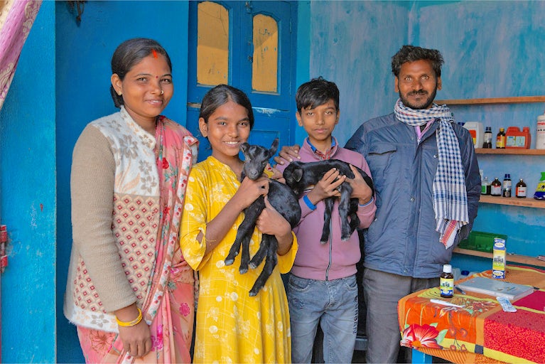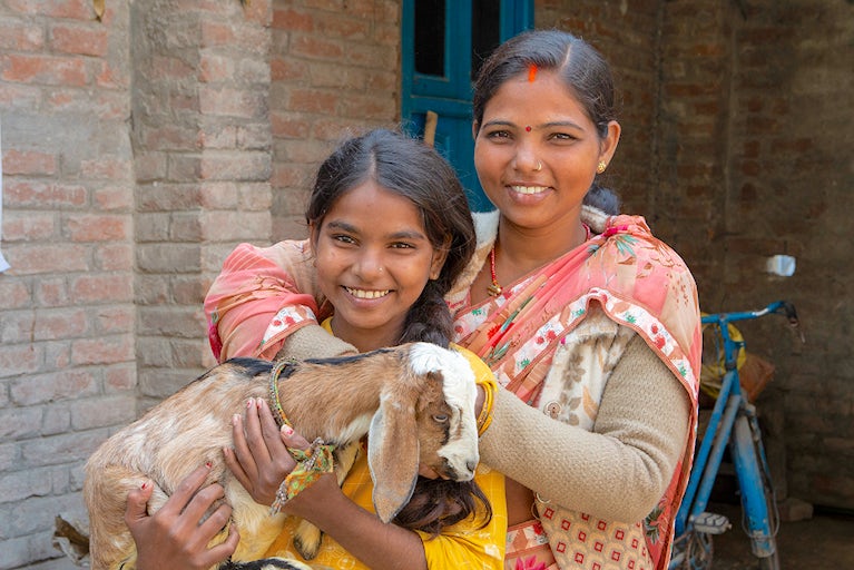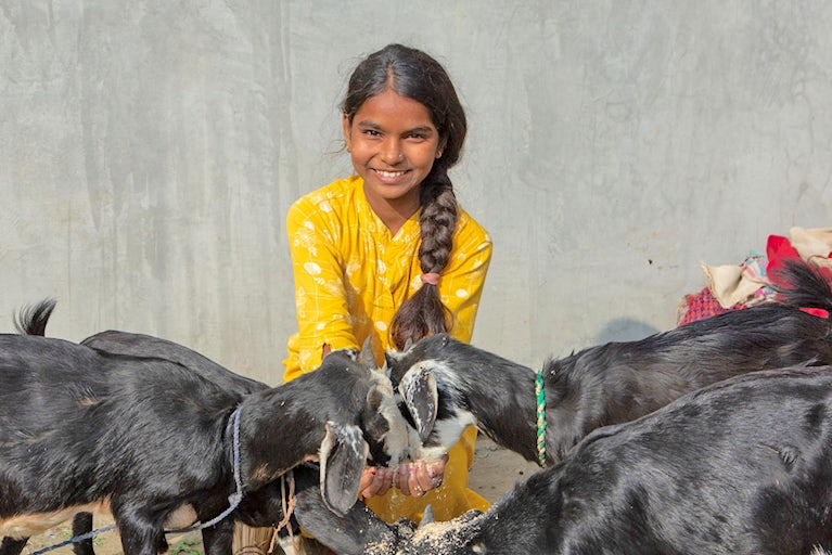 Today, Sandhaya’s health has improved, her income continues to increase and her confidence is soaring. Her own goat-rearing business is growing. She’s nearly paid off her loans and uses the increased income to pay for her children’s private school tuition.